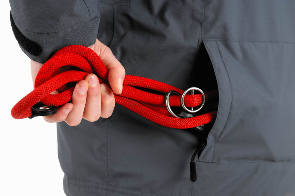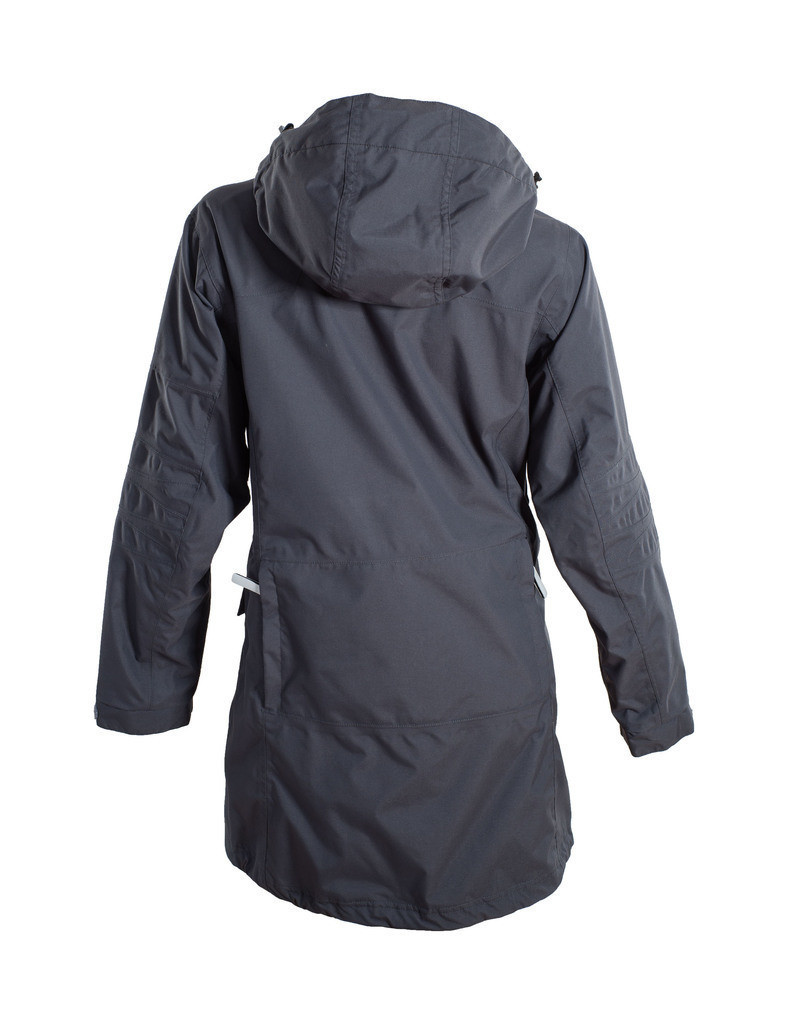 - De jas is aan de onderkant verstelbaar met elastisch koord