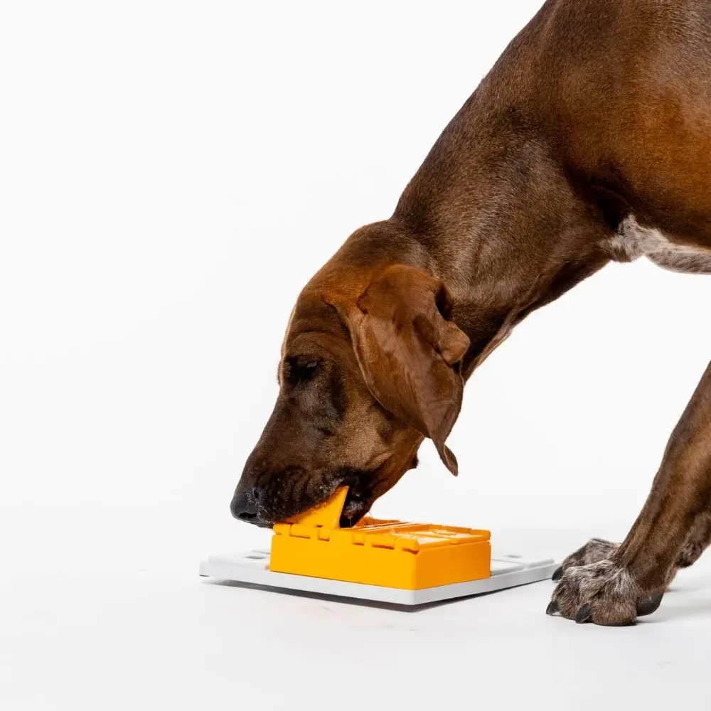 Tip: Begin rustig! Verwijder eerst de schuiven en laat de hond ermee spelen. Voeg beide schuiven pas toe wanneer de hond klaar is voor een grotere uitdaging en om het speelplezier te verlengen.