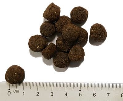 Analytische bestanddelen: ruw eiwit 26,0%, vetgehalte 16,0%, ruwe celstof 2,8%, vochtgehalte 10,0%, ruwe as 7,2%, calcium 1,6%, fosfor 1,2%, omega-3-vetzuur 0,25%, omega-6-vetzuur 1,90%. ME: 3800 kcal/kg.