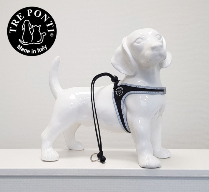 Het Treponti Liberta reflective model iheeft een zilveren reflective omlijning en is naast de Fibbia standaard het meest verkochte tuigje van Treponti. Qua pasvorm en design gelijk aan het Fibbia model, maar de Liberta reflective is voorzien van een ander